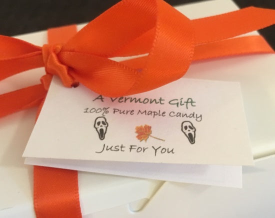 Ribbon & Gift Tag (optional) - Each gift box is tide with an orange ribbon and includes a colorful Halloween gift tag. The outside of the tag is printed with "A Vermont Gift. Just For You." *Gift tag may vary slightly from photography.