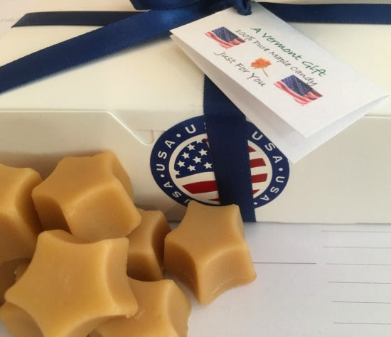 This 28-piece maple candy gift box is a new item that we are very excited about. For years we've wanted to offer a maple candy shape that was specifically for the 4th of July, and we finally found a mold that works with maple candy - not an easy thing to aquire!