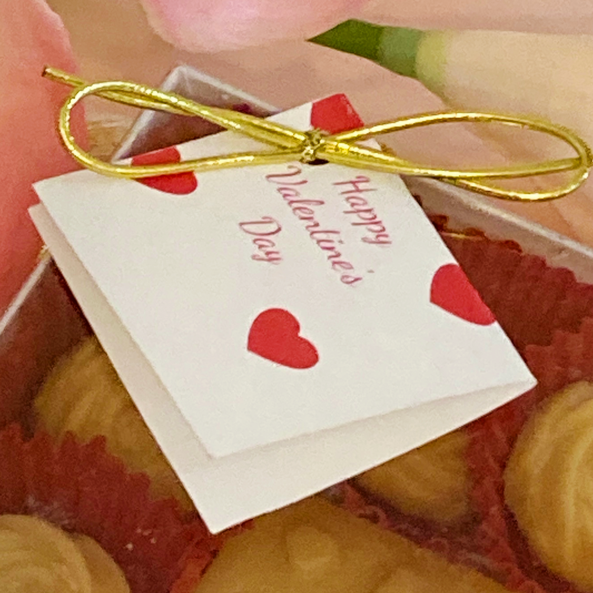 Elastic Band & Gift Tag - Each gift box is secured with a gold elastic band and includes a colorful Valentine's Day gift tag. The outside of the tag is printed with "Happy Valentine's Day." *Gift tag may vary slightly from photography.
